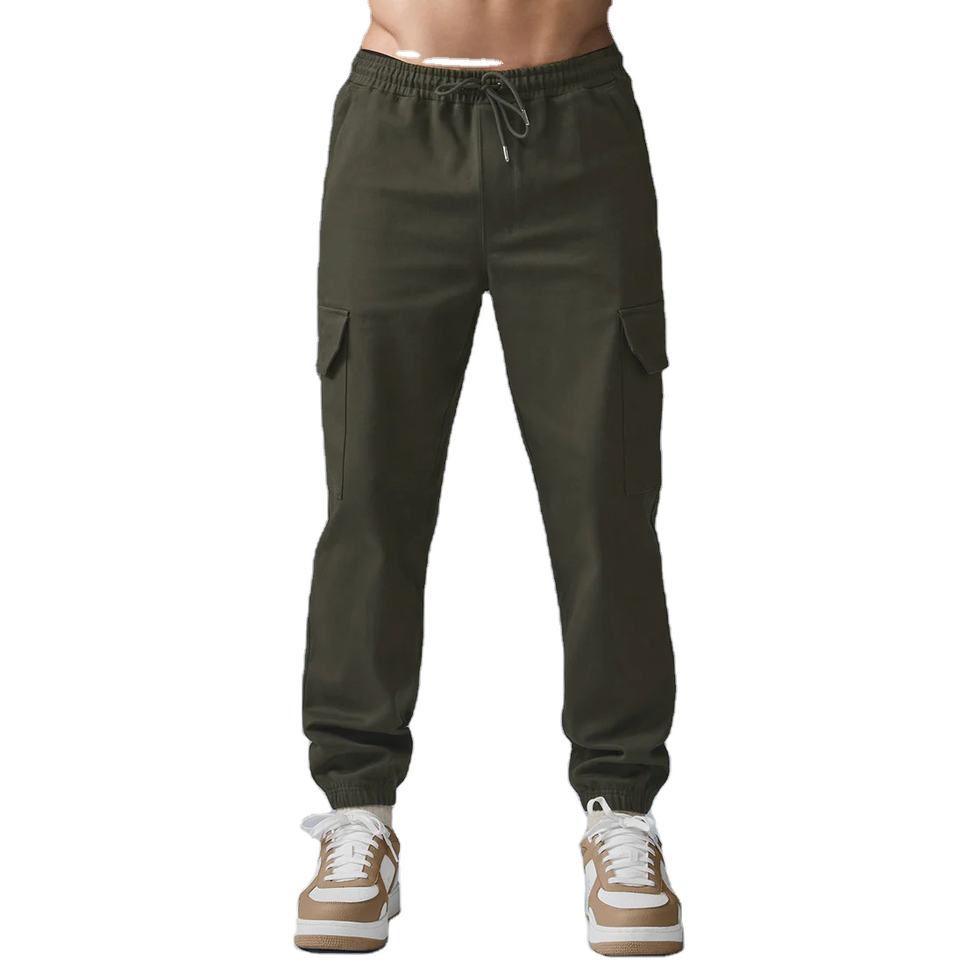 High Quality Men Cargo Pants Drawstring Waist Casual Pants Multiple Pockets Cotton Work Out Joggers for Men