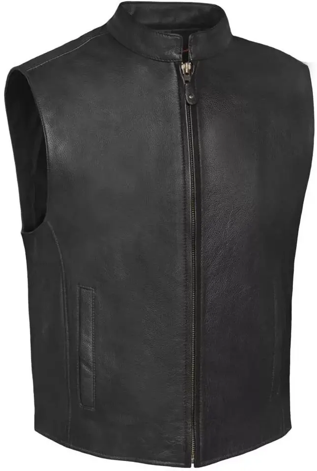 High Quality Men Lambskin 100% Leather Waistcoat Western Vest Coat Classic Black Jacket Motor Bike Vest