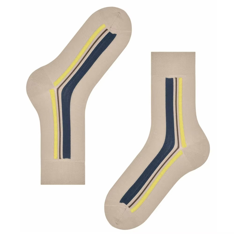 High Quality Men Outdoor Spandex/Polyester Athletic Socks Custom Printed Beige Base Colorful Side Stripe Design Autumn Anti-Foul