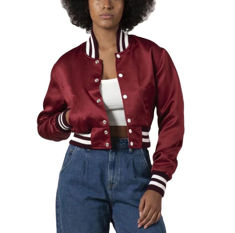 High Quality Men Satin Polyester Varsity Baseball Jacket Winter Wear Comfortable Satin Silk Cropped Satin Varsity Jackets Women