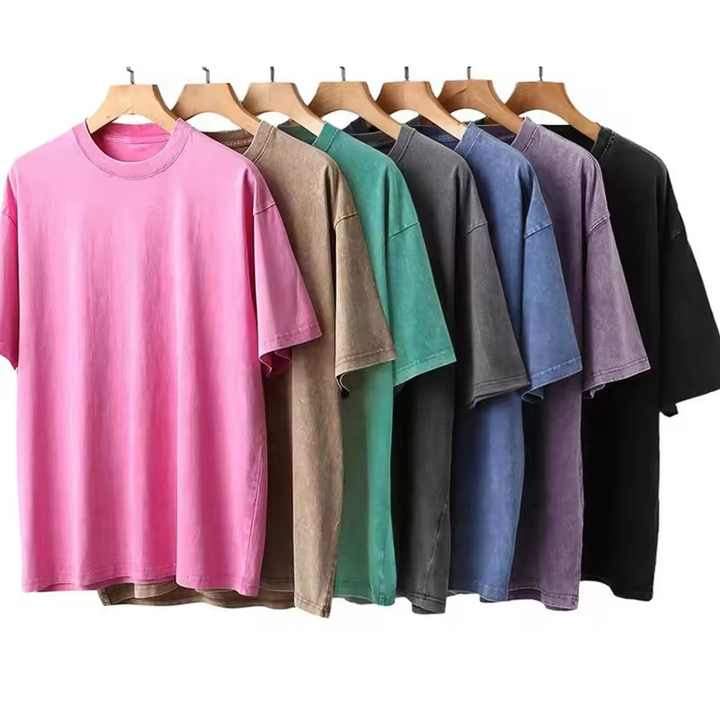High Quality Men Stone Washed T Shirt Distressed Heavyweight Acid Washed T-Shirt Oversized Acid Wash Vintage T-shirt for men