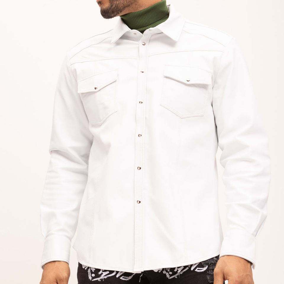 High Quality Men White Leather Shirt with Custom Stylish Design Breathable Quick-Dry Turn-down Collar for Events Casual Outfits
