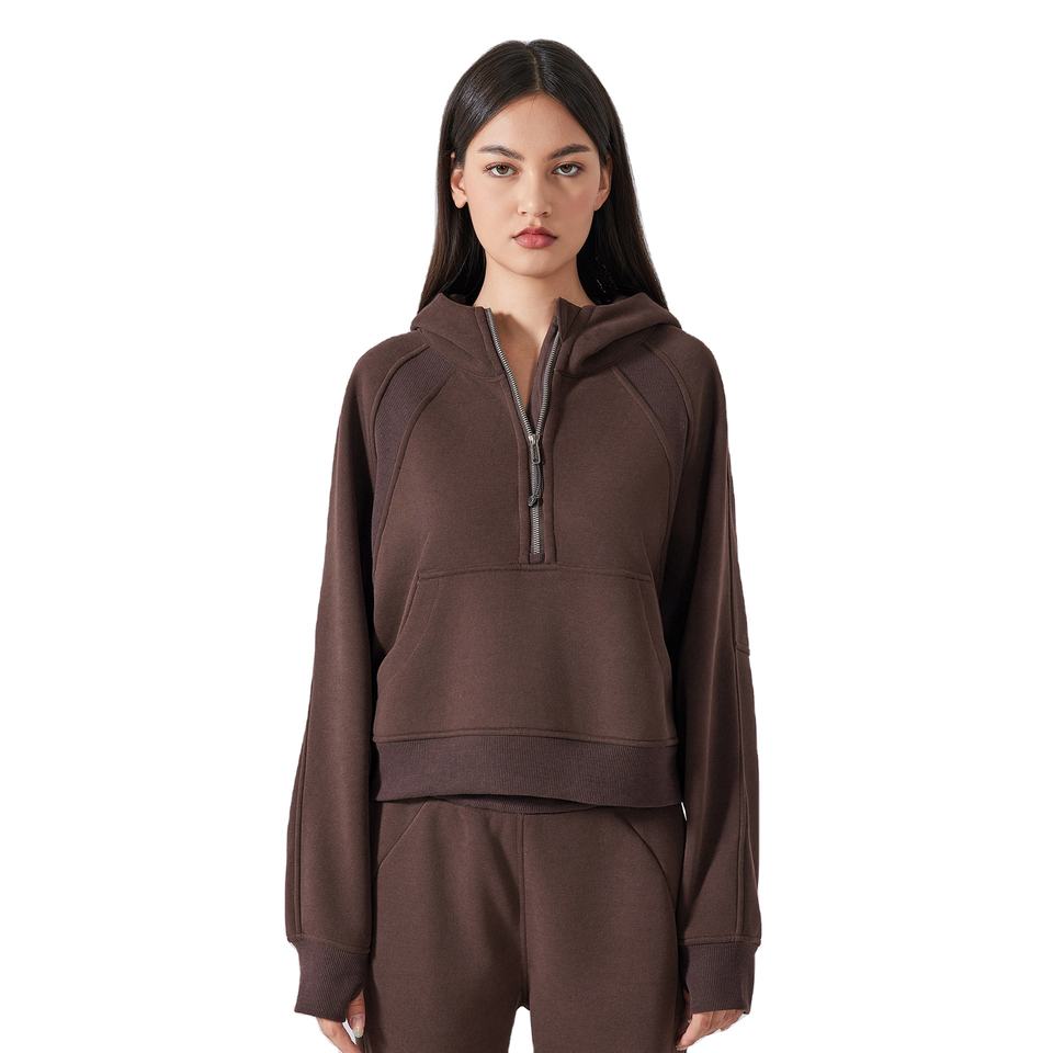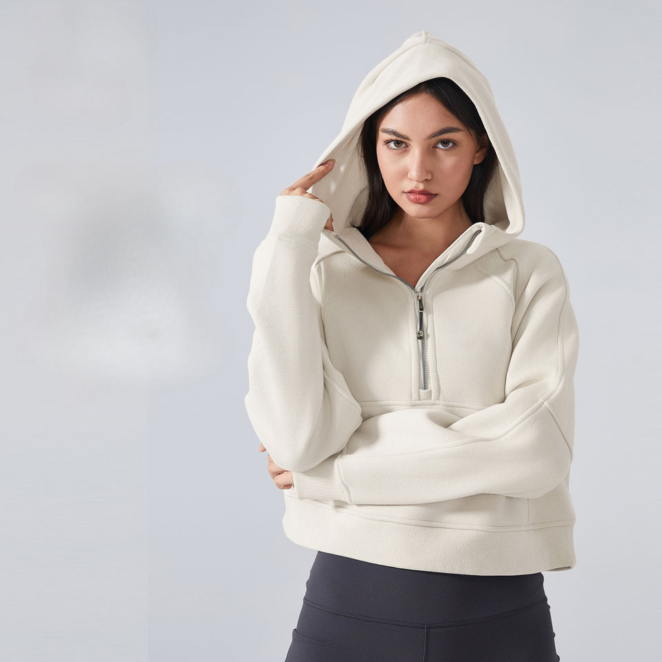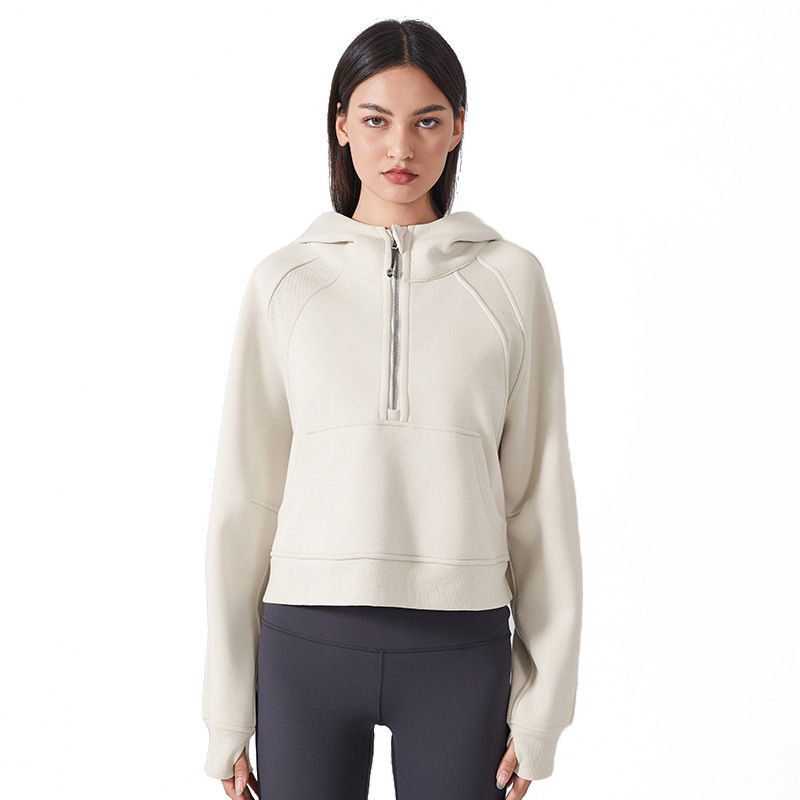 High Quality Men Winter Fleece Lined 100% Cotton Half Zip Hoodies Thumb Pullover Crop Top Long Sleeve Workout Sweatshirts