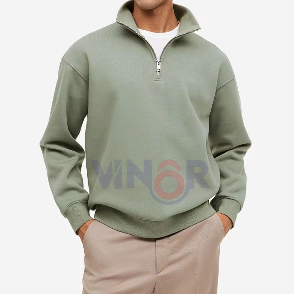 High Quality Men's 1/4 Quarter Zip Fleece Sweatshirt with Stand Collar Embroidered Pullover for Winter Professional Custom Made