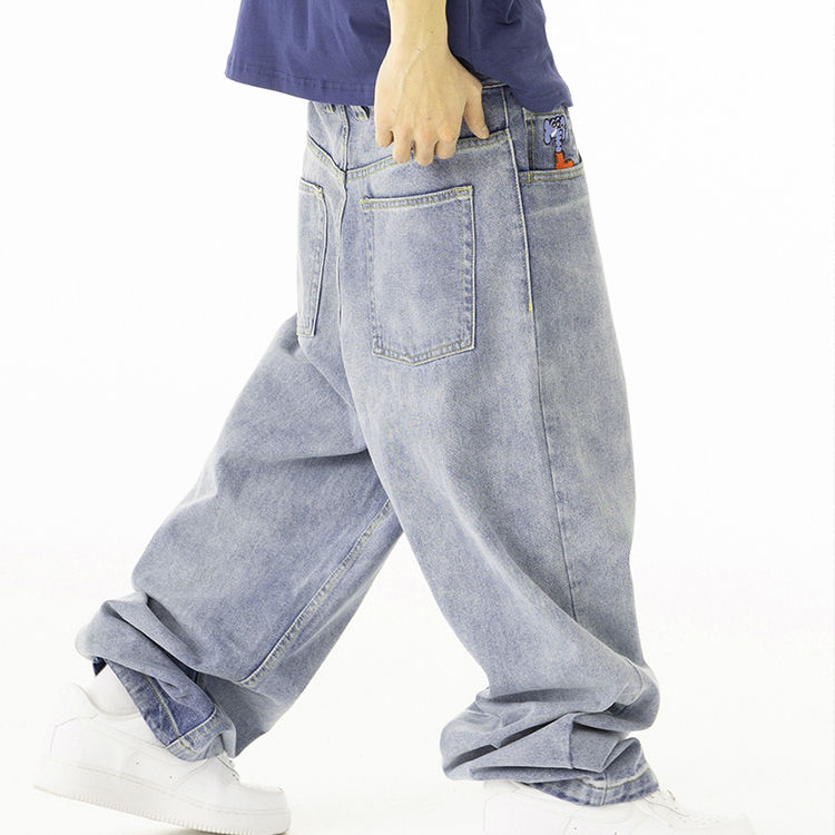 High Quality Men's Baggy Straight Jeans Oversized Hiphop Streetwear Pants with Light Wash Mid Waist Logo Print Pattern