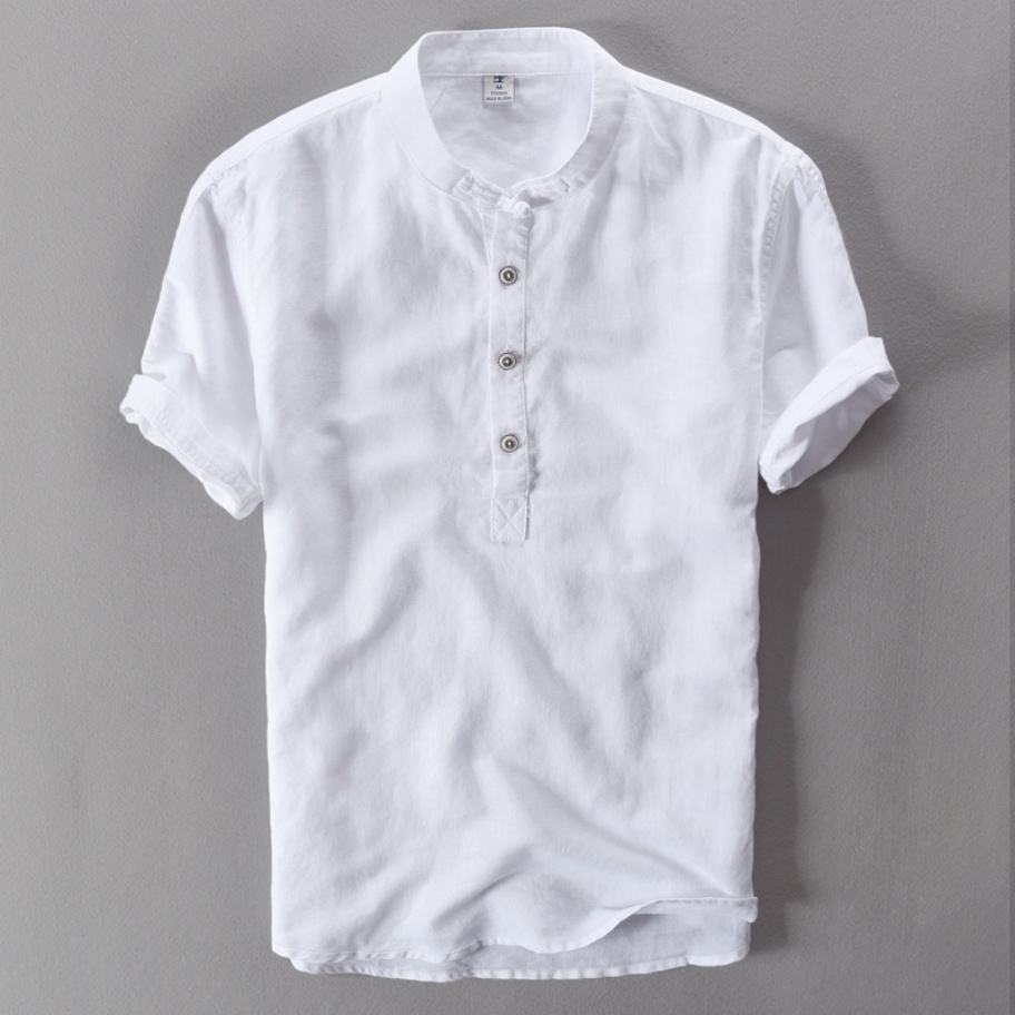 High Quality Men's Casual Shirts Solid Pattern Linen/Cotton Breathable Quick Dry Summer Fashion Single Button Closure