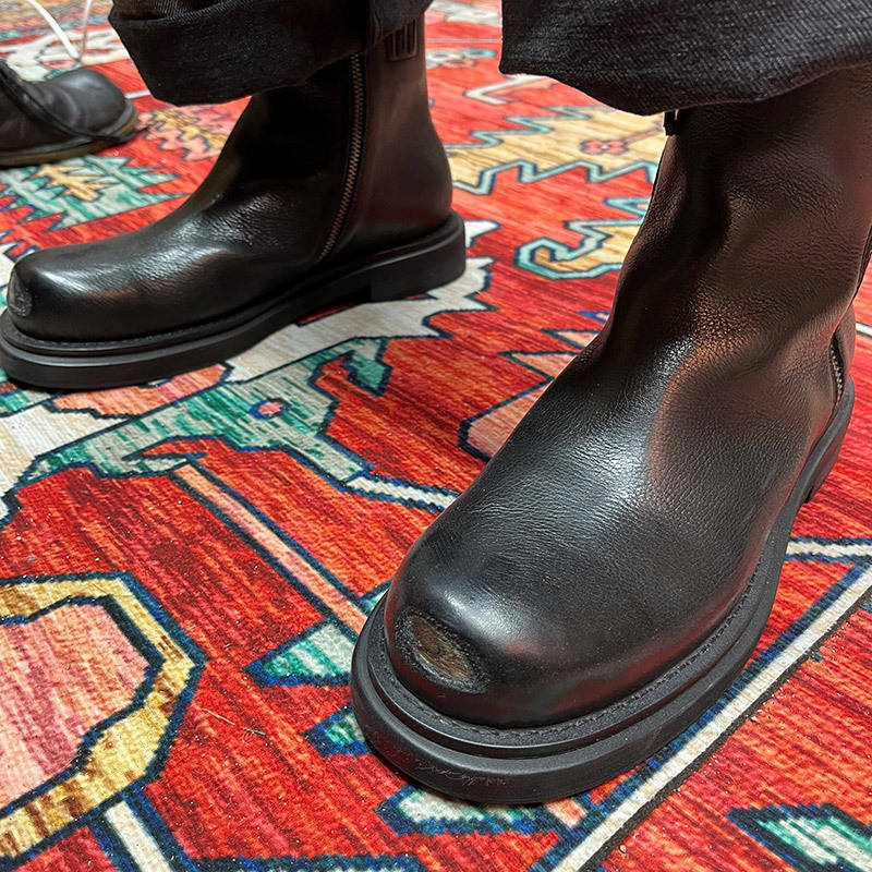High Quality Men's Chelsea Boots Premium Handmade Retro Moto Biker Winter Soft Leather Steel Toe Side Zipper Ankle Support