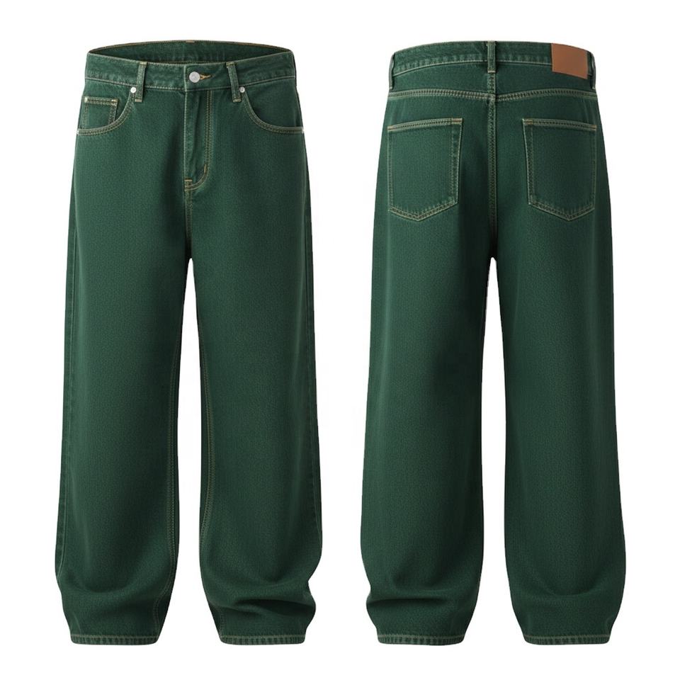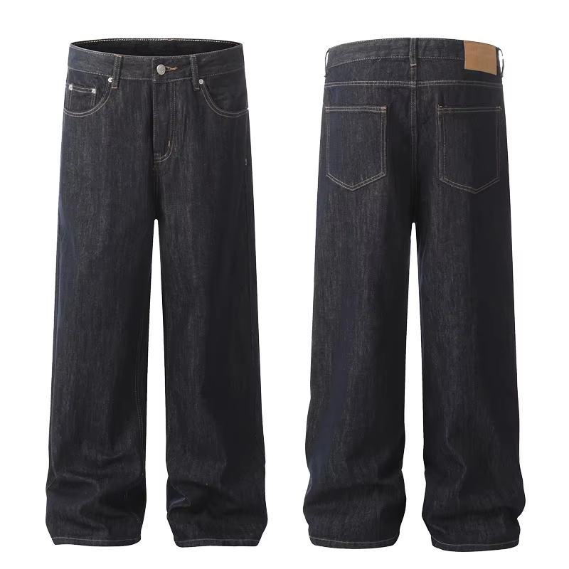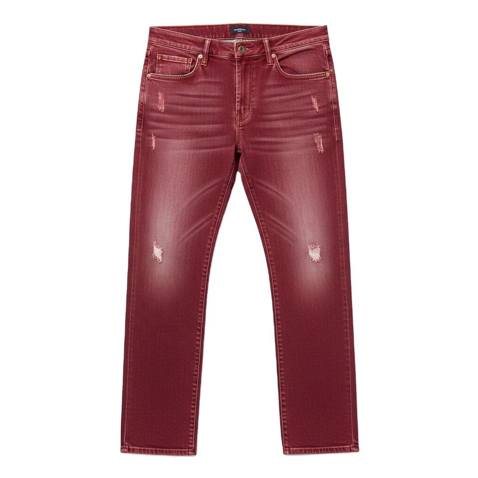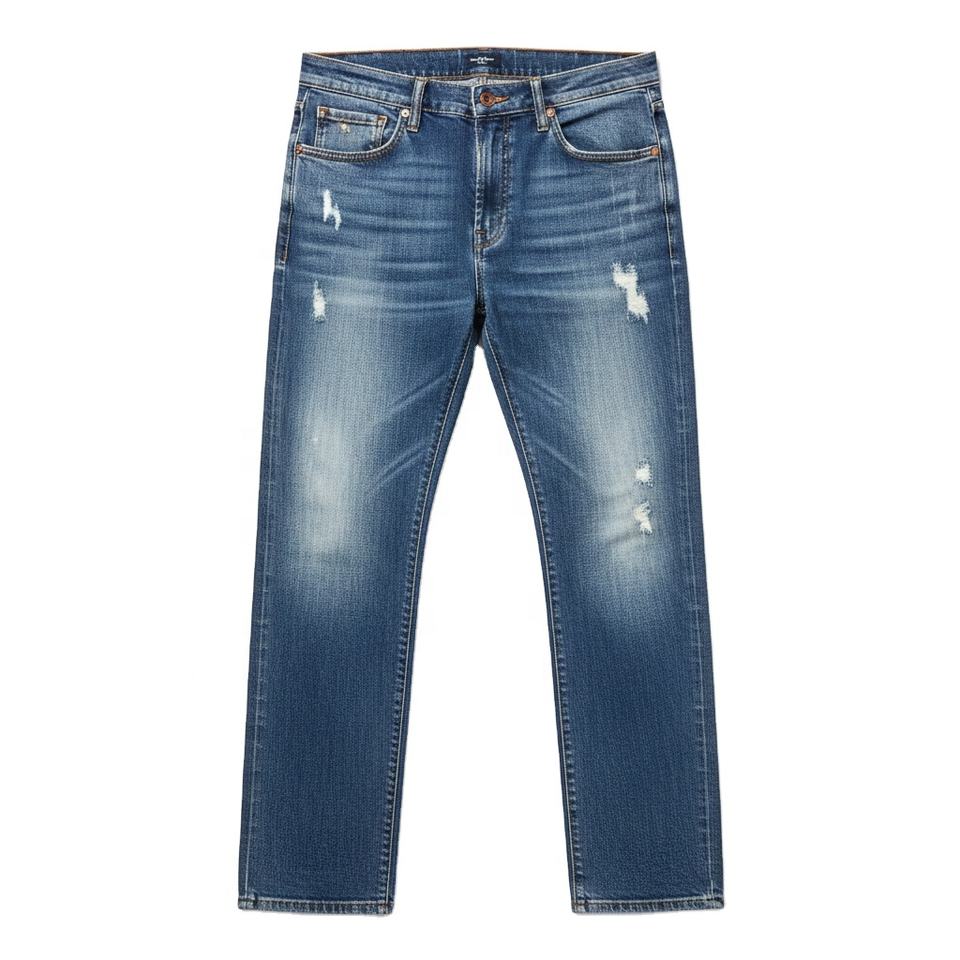High Quality Men's Denim Jeans Midweight Mid Waist Leopard Pattern Regular Fit Customizable Stonewashed