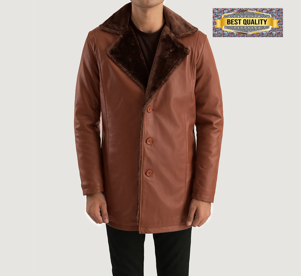 High Quality Men's Genuine Leather Jacket Trench Coat CINNAMON BROWN LEATHER FUR COAT Custom Service Available