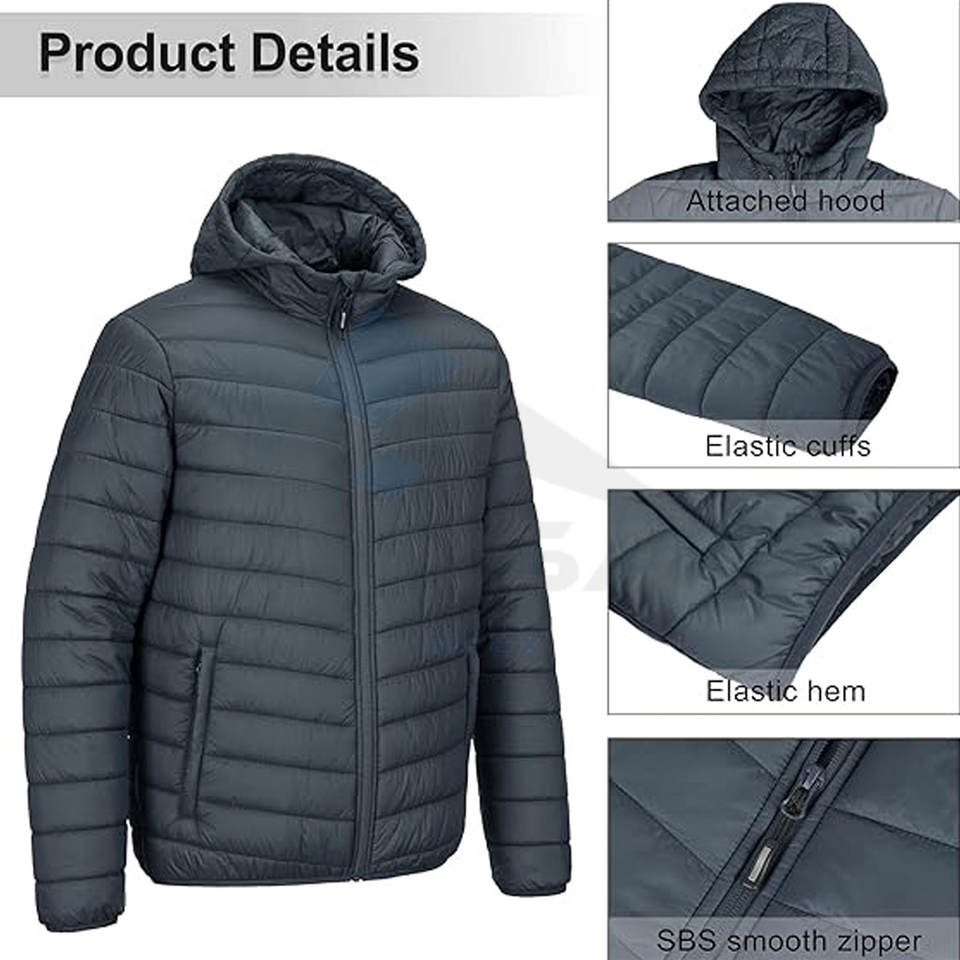 High Quality Men's Hooded Winter Jacket Lightweight, Packable, Insulated Coat for Fall, Spring, Winter Factory Direct OEM Bulk