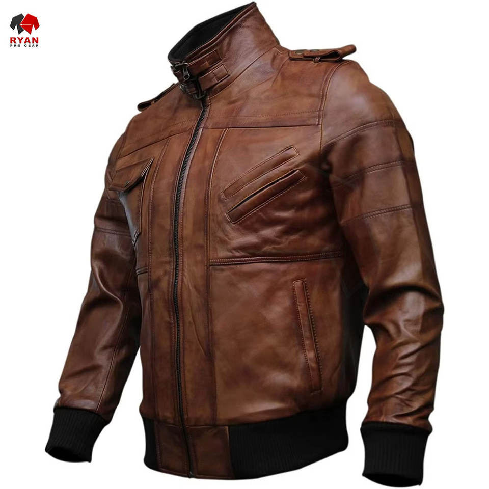 High Quality Men’s Leather Jacket Custom Logo Solid Colour Modern Design OEM ODM Wholesale