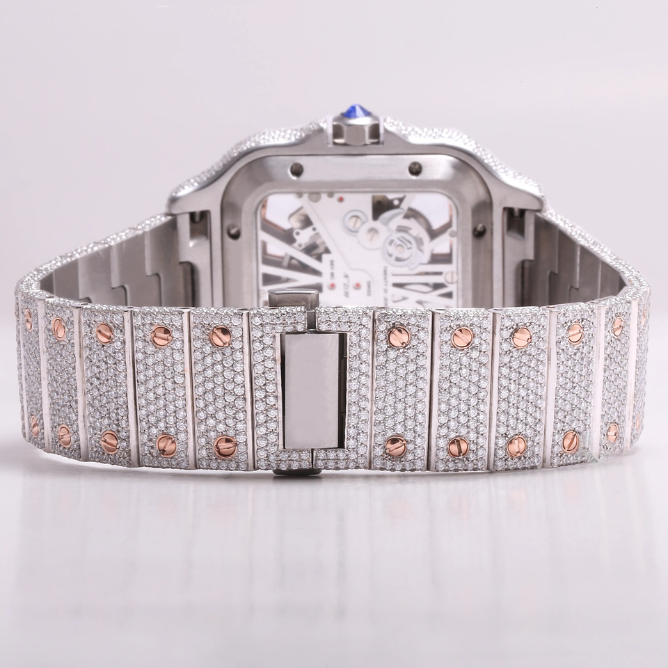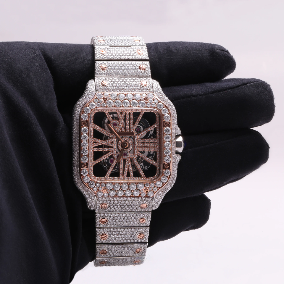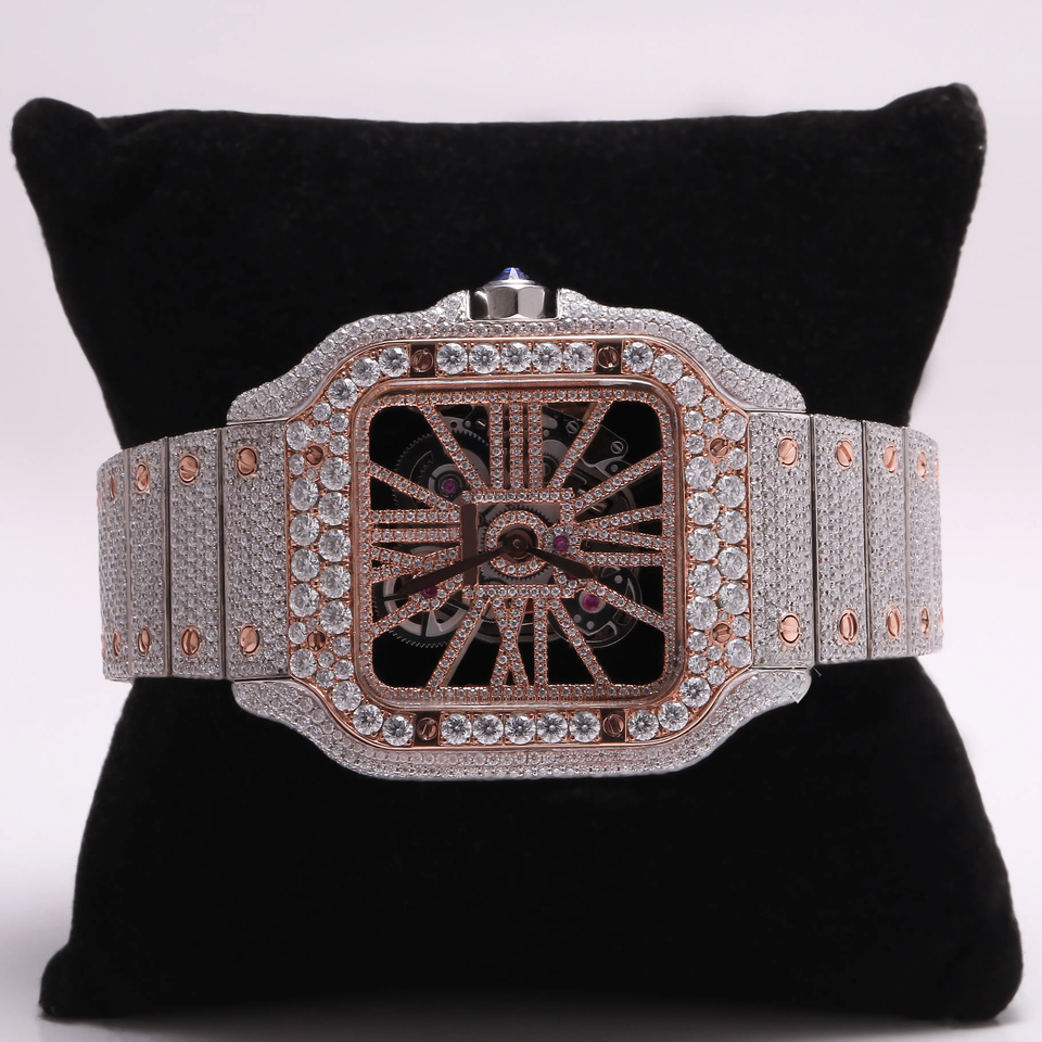 High Quality Men's Luxury Watch Latest 18K Rose Gold Stainless Steel Plated Natural Moissanite Diamond Square Quartz Fashionable