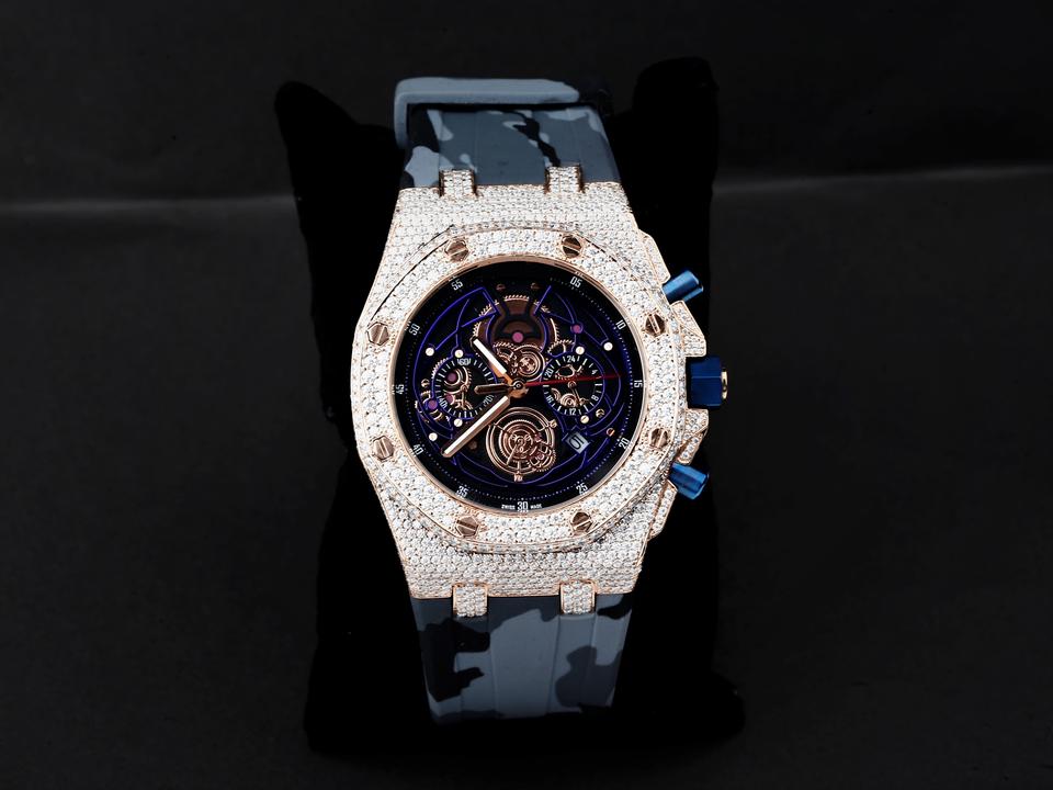 High Quality Men's Moissanite Diamond Antique Sport Watch Luxury Hip Hop Style Iced Two-Tone Rubber Strap Stainless Steel Quartz