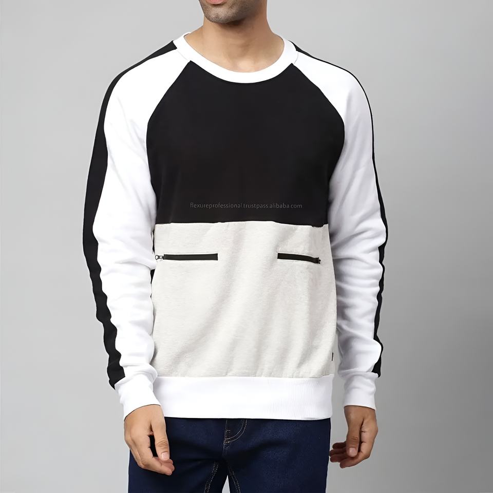 High Quality Men’s Oversized Colorblock Crew Neck Sweatshirt Cotton Fleece Casual Streetwear Winter Bulk Wholesale OEM