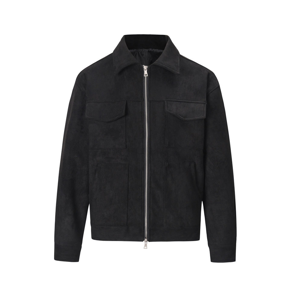 High Quality Men's Slim Fit Suede Leather Jacket Reversible Multi-Pocket Zippered Sporty Biker Style Dyed High Street Design