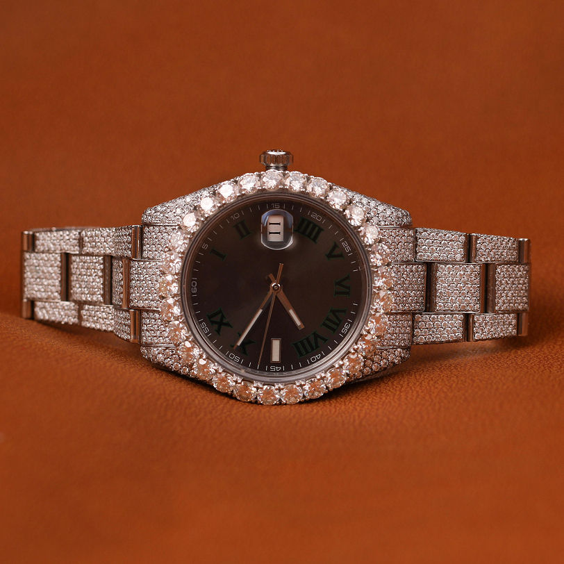 High Quality Men's Stainless Steel Analog Wrist Watch Hip Hop Style Brilliant Cut Leb Grown Diamond VVS Clarity Enhancement