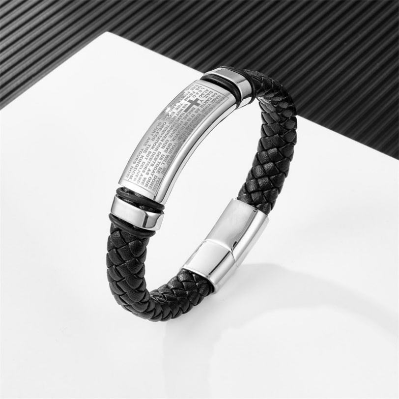 High Quality Men's Stainless Steel Christianity Gold Plated Fashionable Religious Bangles Gift Leather Men's Bracelet
