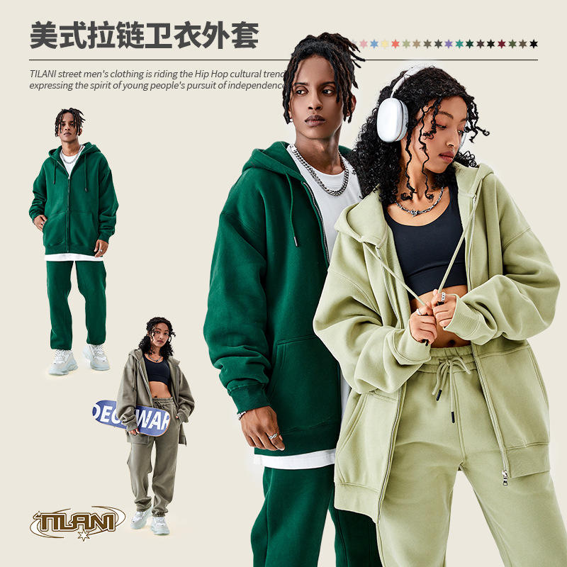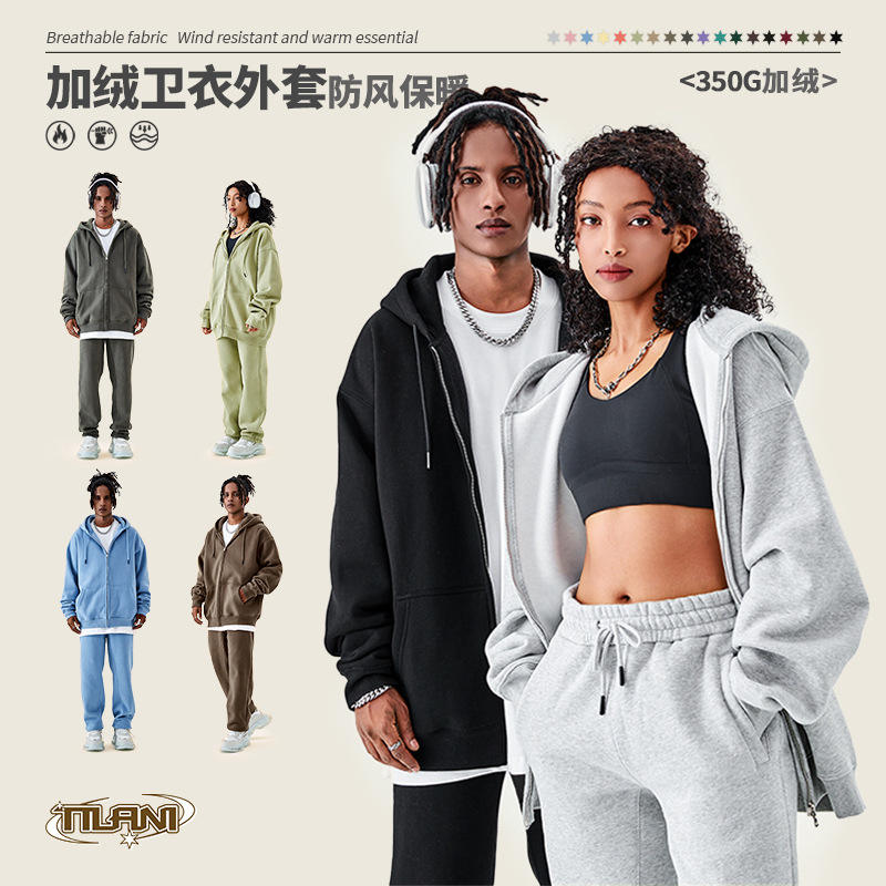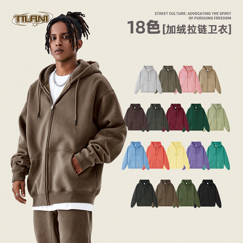 High Quality Men's Sweatshirt Plus Velvet Jacket Oversize Heavyweight 100% Cotton Unisex Thick Blank Sweatshirt Zip Hoodies