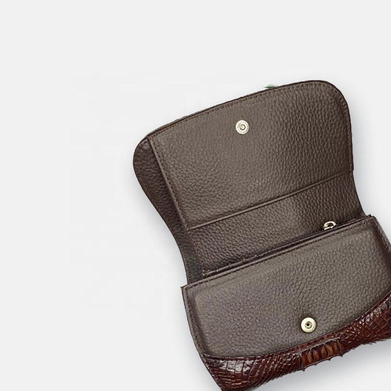 High Quality Men's Trifold Genuine Crocodile Leather Wallet Customizable Colors and Short Button Direct Wholesale From Vietnam