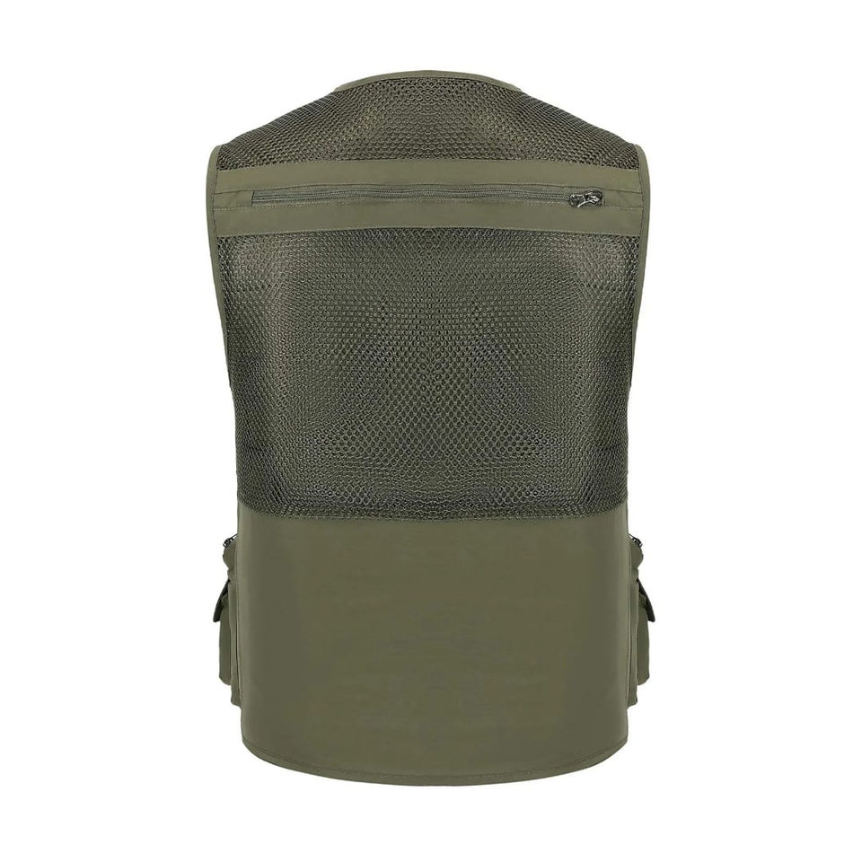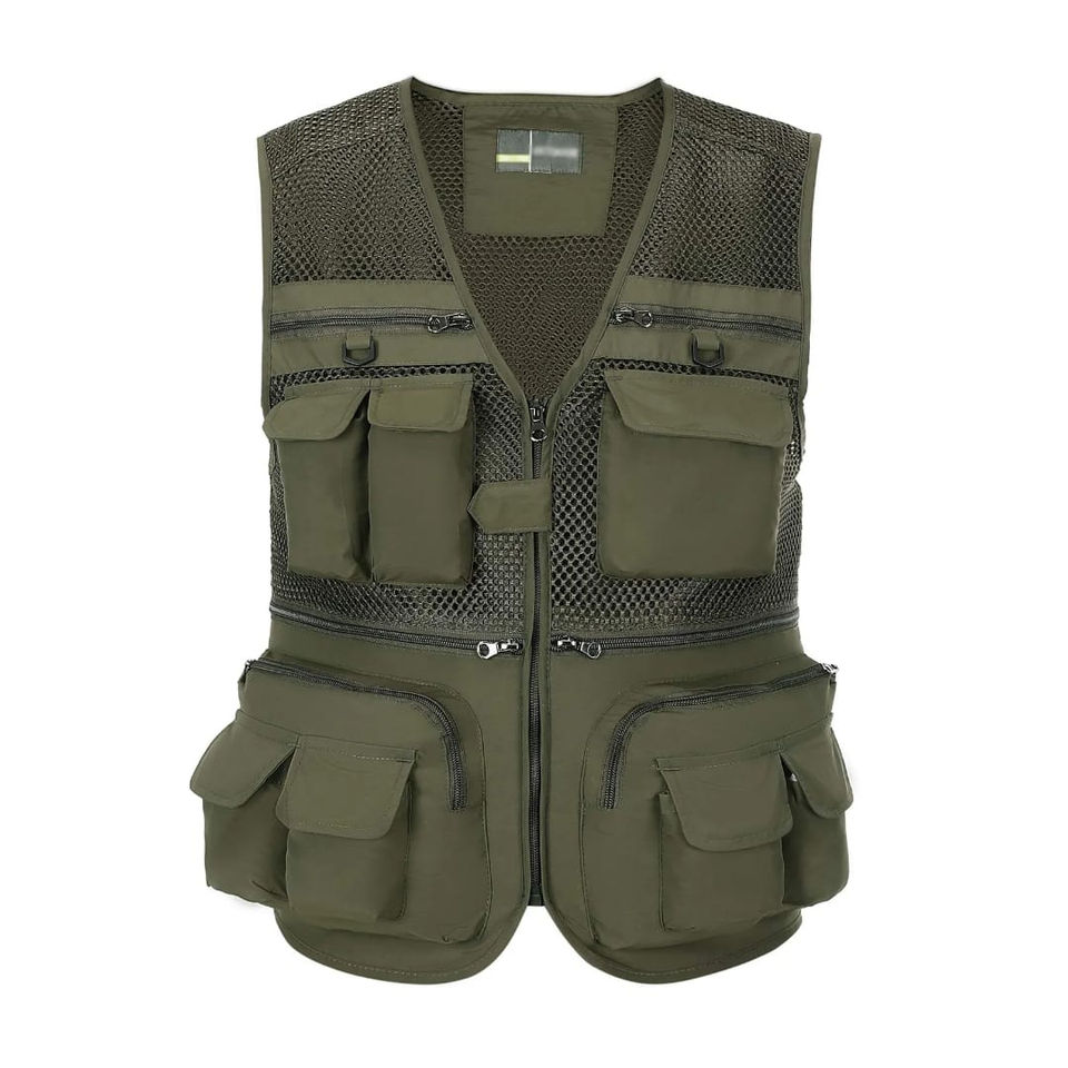High Quality Men's Utility Winter Work Cargo Vest Olive Green Mesh Single Button Quick Dry Outer Wear Travelling Vest