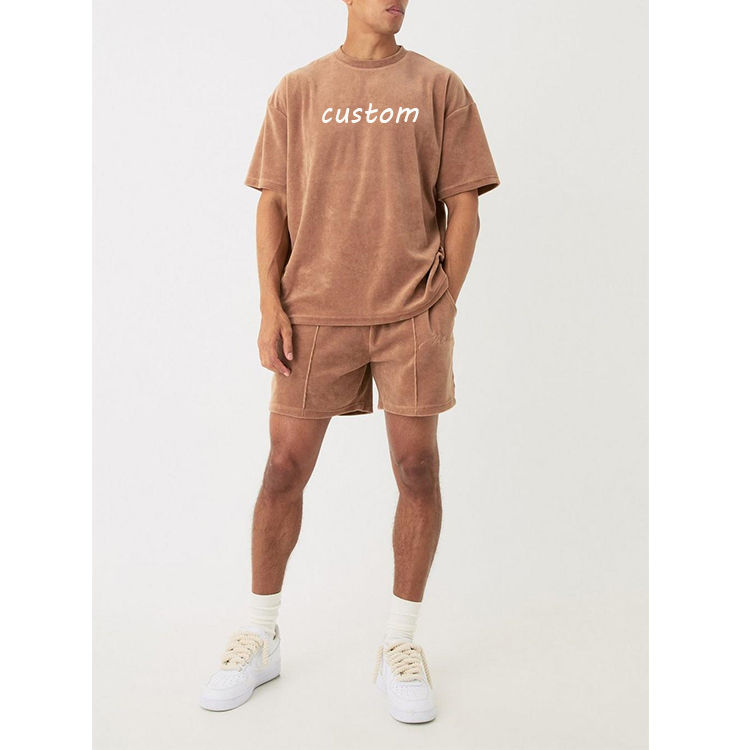 High Quality Men's Vintage Woven Fleece Oversized Printed T-Shirt and Shorts Set with Pintuck O Neck Short Sleeves Winter
