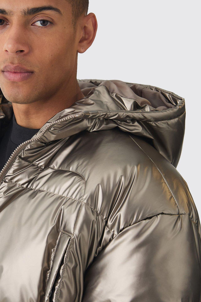 High Quality Men's Winter Puffer Jacket Polyester Quilted Hooded Fur Brown Custom Windproof Waterproof Warm Bubble Stylish Shine