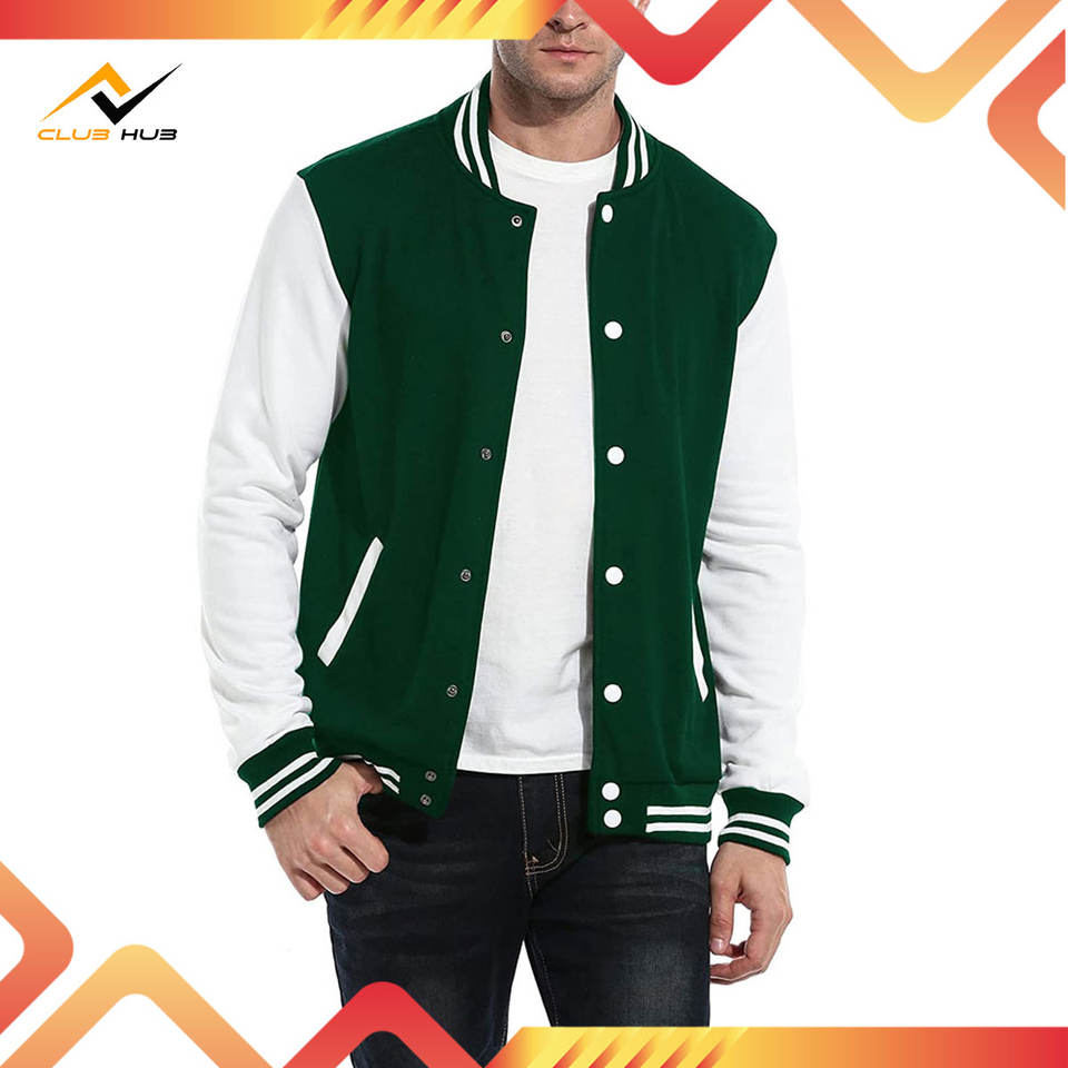 High Quality Men’s Wool Cotton Canvas Varsity Jacket Custom Embroidered Logo Stand Collar Winter Bomber