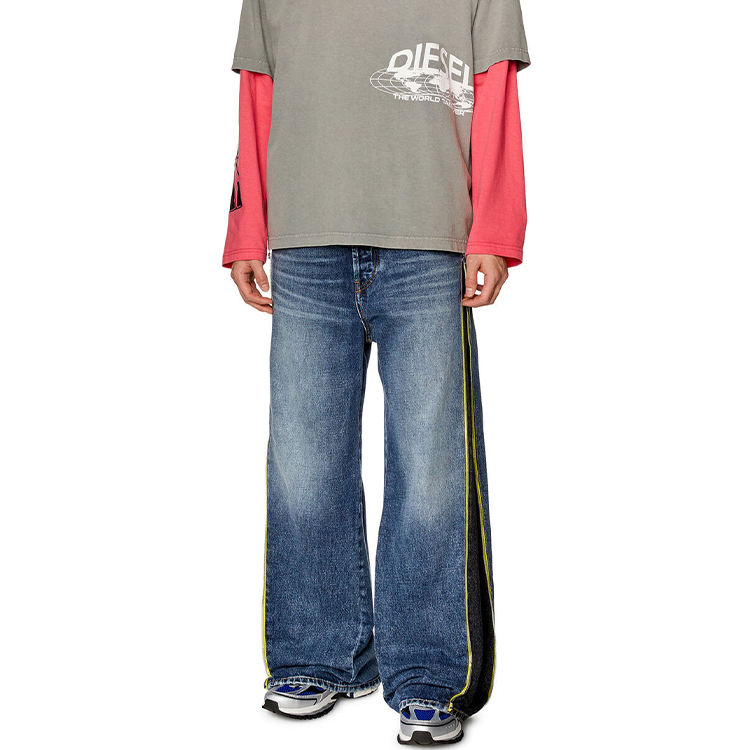 High Quality Mens Casual Baggy Jogger side strap Custom Loose Fit Street Wear Jeans Distressed Washed Denim Solid Pattern Summer