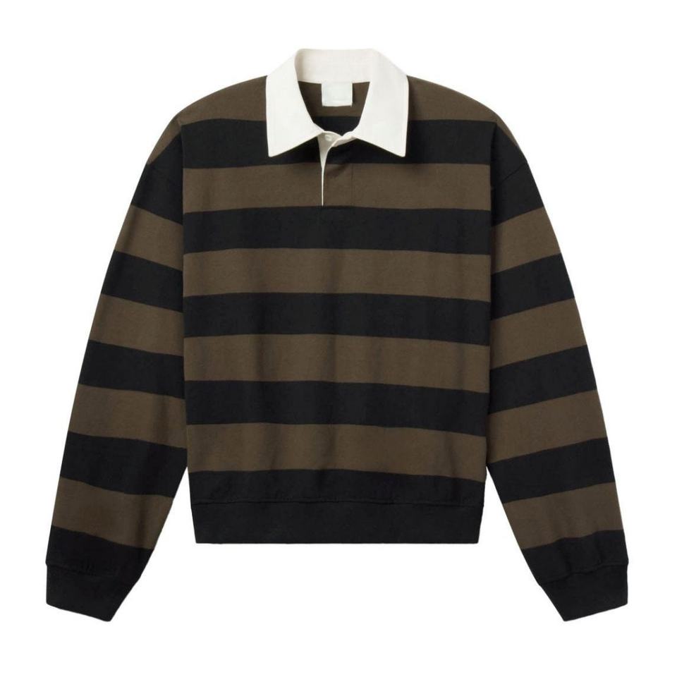 High Quality Mens Color Blocking Stripe Polo Shirts 100% Cotton Loose Fit Long Sleeve Polo Tshirts for Men
