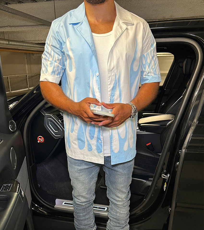 Keywords:Custom Logo Flame Open Collar Shirt