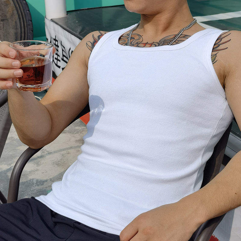High Quality Mens Gym Vest Top Mens 230g Gym Tank Top Custom Logo Muscle Sport Fit Ribbed Vests Ribbed Vest Men