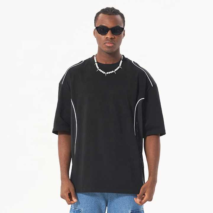 High Quality Mesh Splice Reflective Running Sports T Shirt Custom Patchwork Arc Cut Contrast Men Tshirt