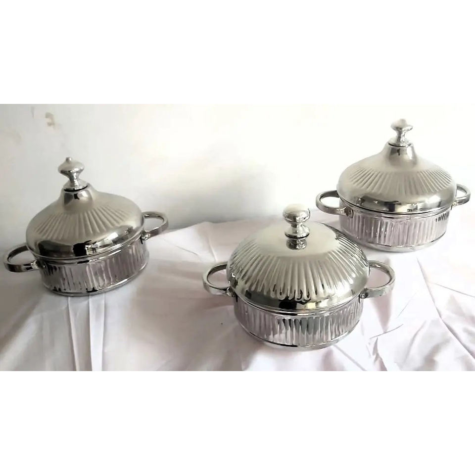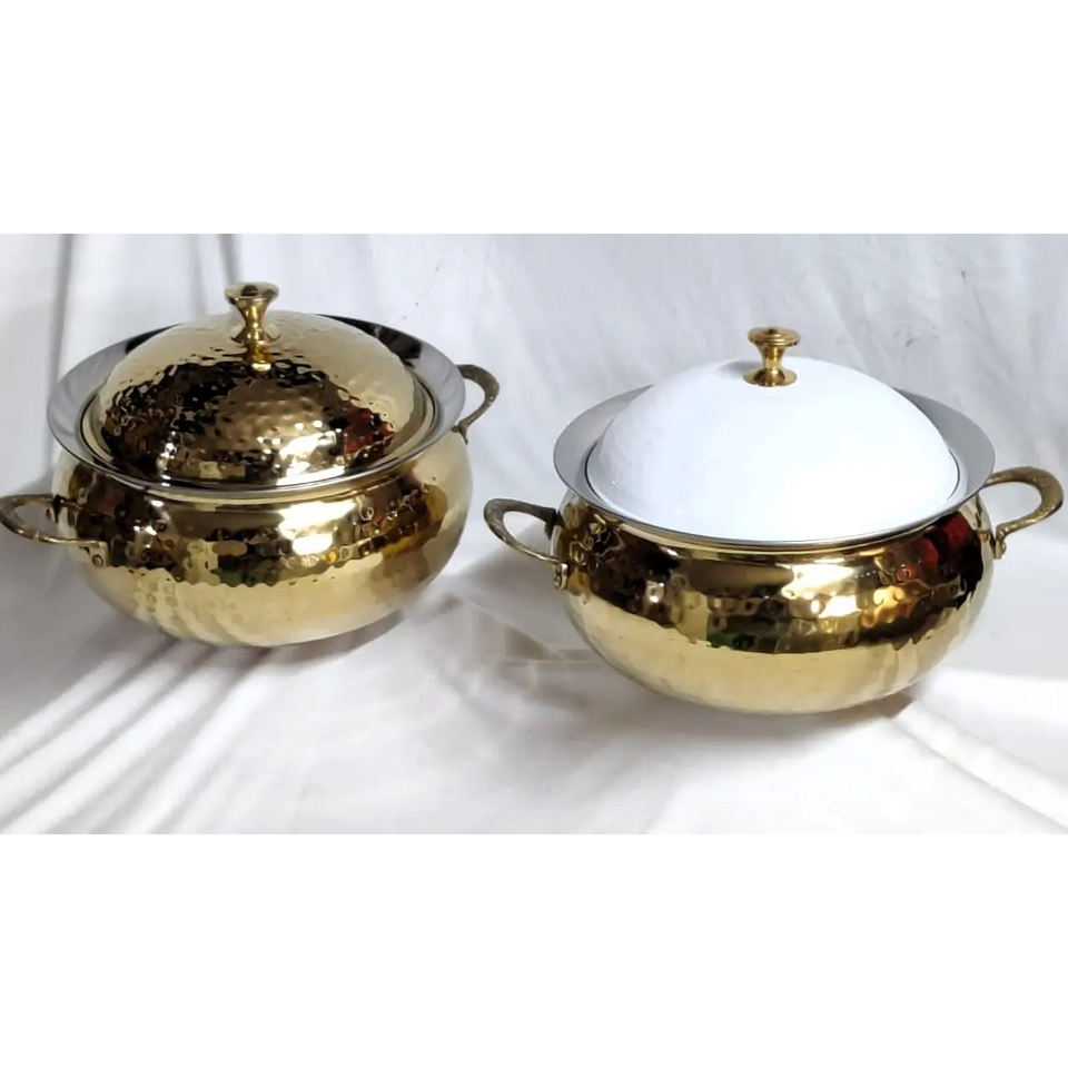 High Quality Metal Hot Pot With Lid Hammered Work Silver and Gold Finished Used As Food Warmers in Multiple Volumes