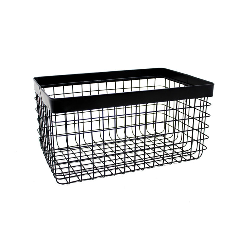 High Quality Metal Iron Wire Basket in Rectangle Shape Black Finished for Tabletop Living Room Multipurpose Storage Basket