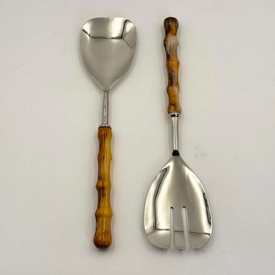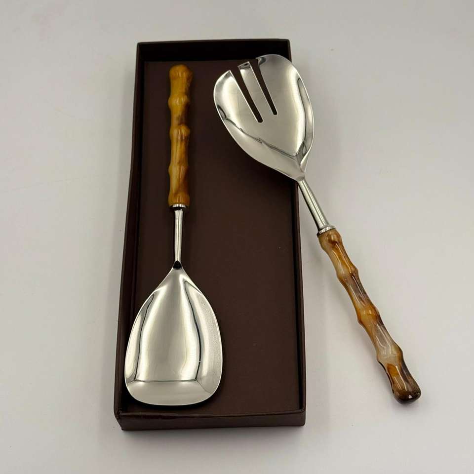 High Quality Metal Stainless Steel Large Salad Serving Spoons with Resin Handle Handmade Used for Home and Restaurant
