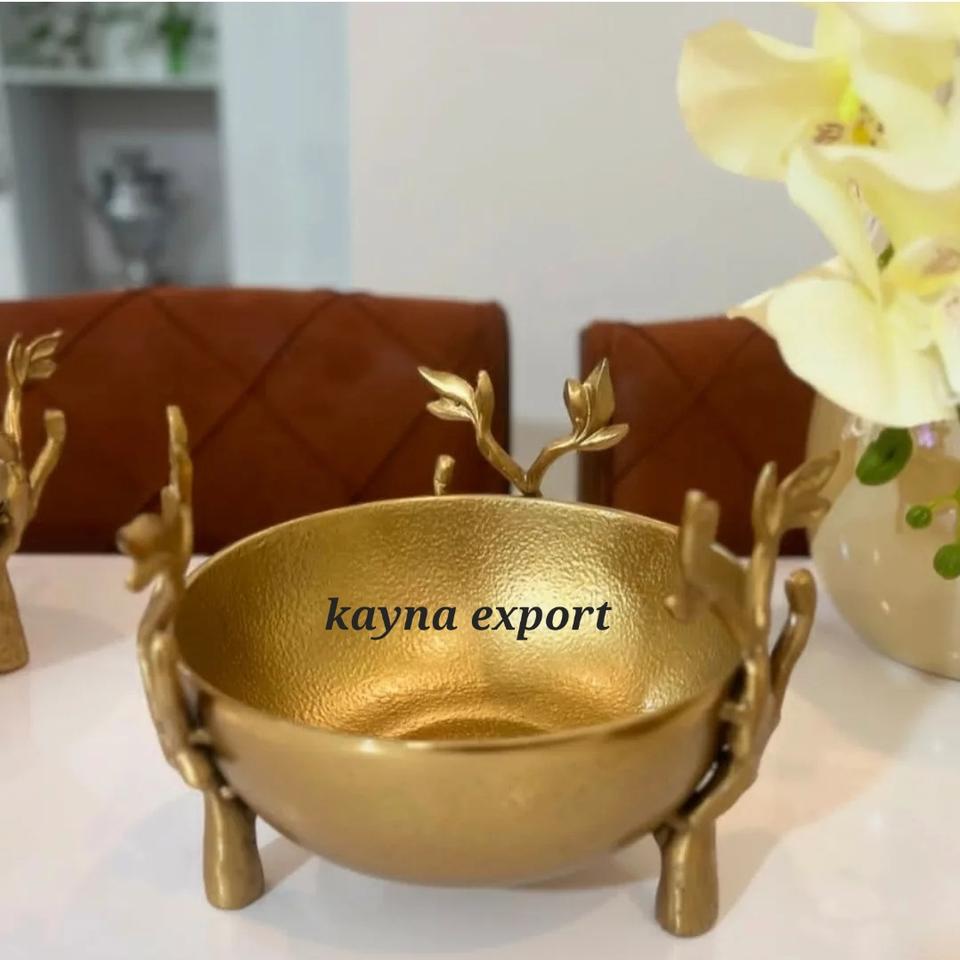 High Quality Eco-Friendly Metal Texture Design Polished Gold Branch Shiny Nickel Plated Decorative Snacks Bowl for Party Use