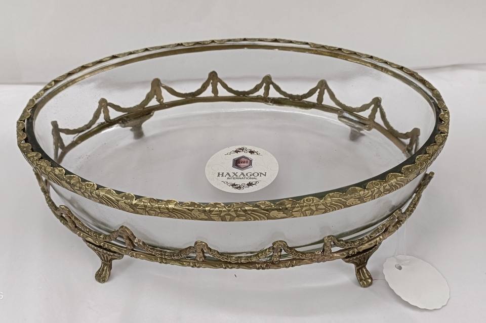 High Quality Metal and Glass Bowl Fancy Work Round Shape Serving Bowl, fruits bowl and showpiece with Golden Metal for Wedding