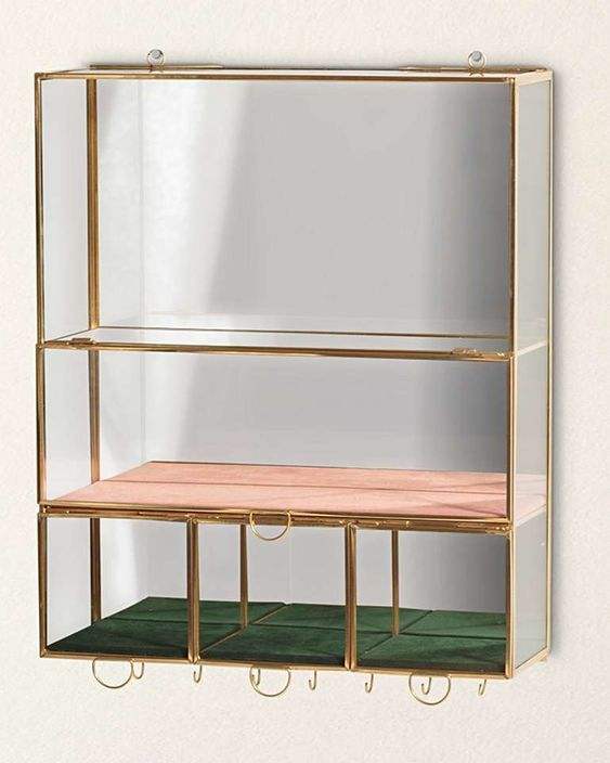 High Quality Metal and Glass Jewelry Almirah for Home Mall Display Export Quality Brass Ring Box Organizer Showcase Jewelry Box