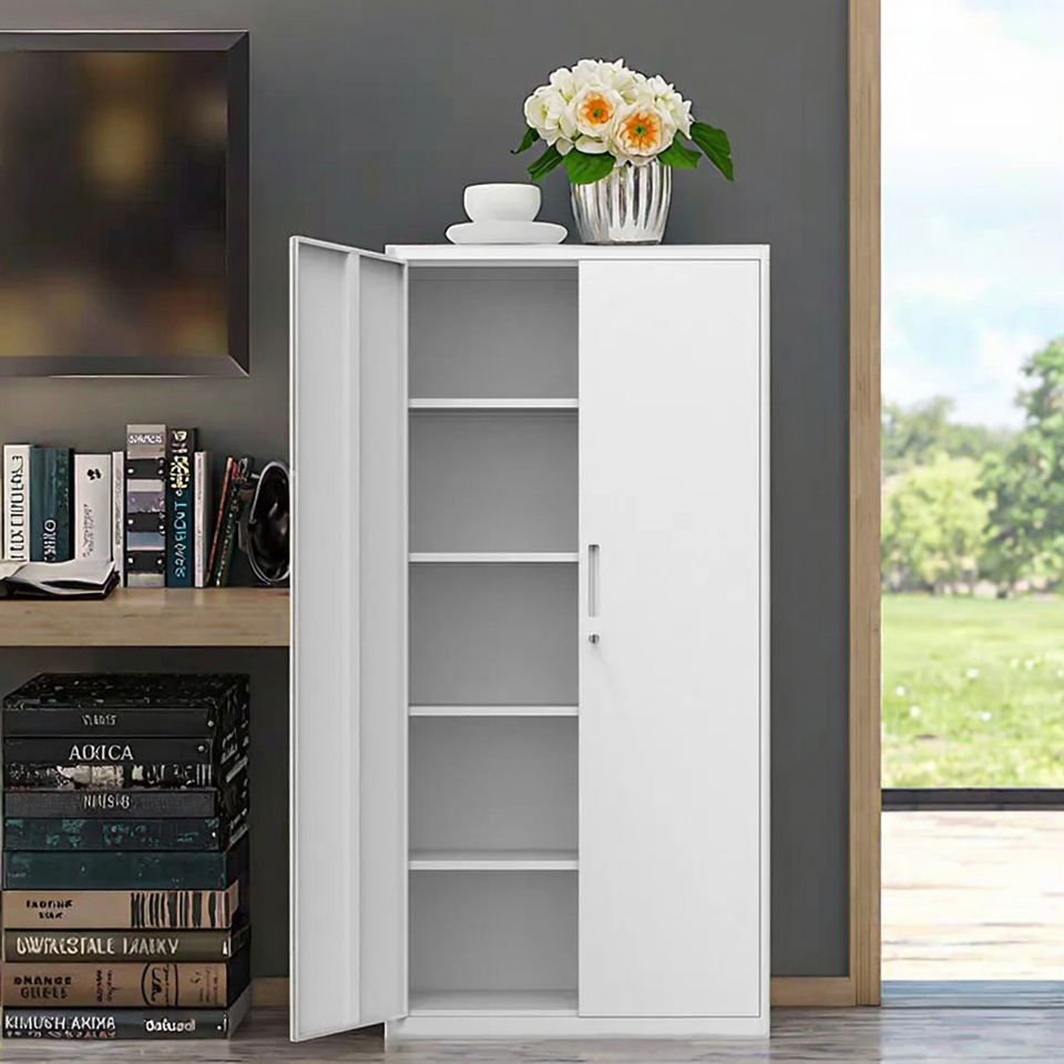 High Quality Modern 2-door Metal Storage Cabinet Adjustable Shelf Steel Locker Cupboard Workshop Utility Bookcase School Storage