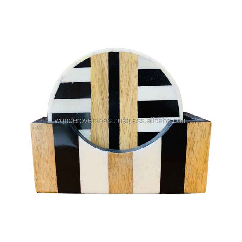 High Quality Modern Crafts Tableware Classic Style WONDEROVERSEAS Walnut Coasters with Bone Resin Inlay Free Table Coasters