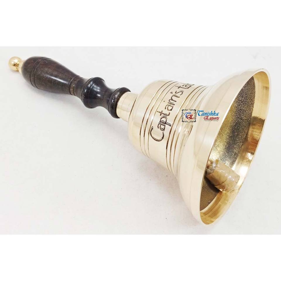 High Quality Modern Gold-Plated Brass Wood Handmade Nautical Handheld Bells Polished Finish Wooden Handle Christmas Home School