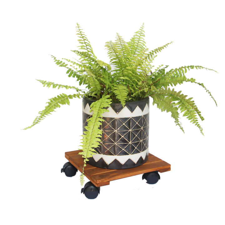 High Quality Modern Square Wooden Plant Caddy 30x30cm Wheels Wood Planter Trolley Mover Stand for Home Garden Shopping Mall Use