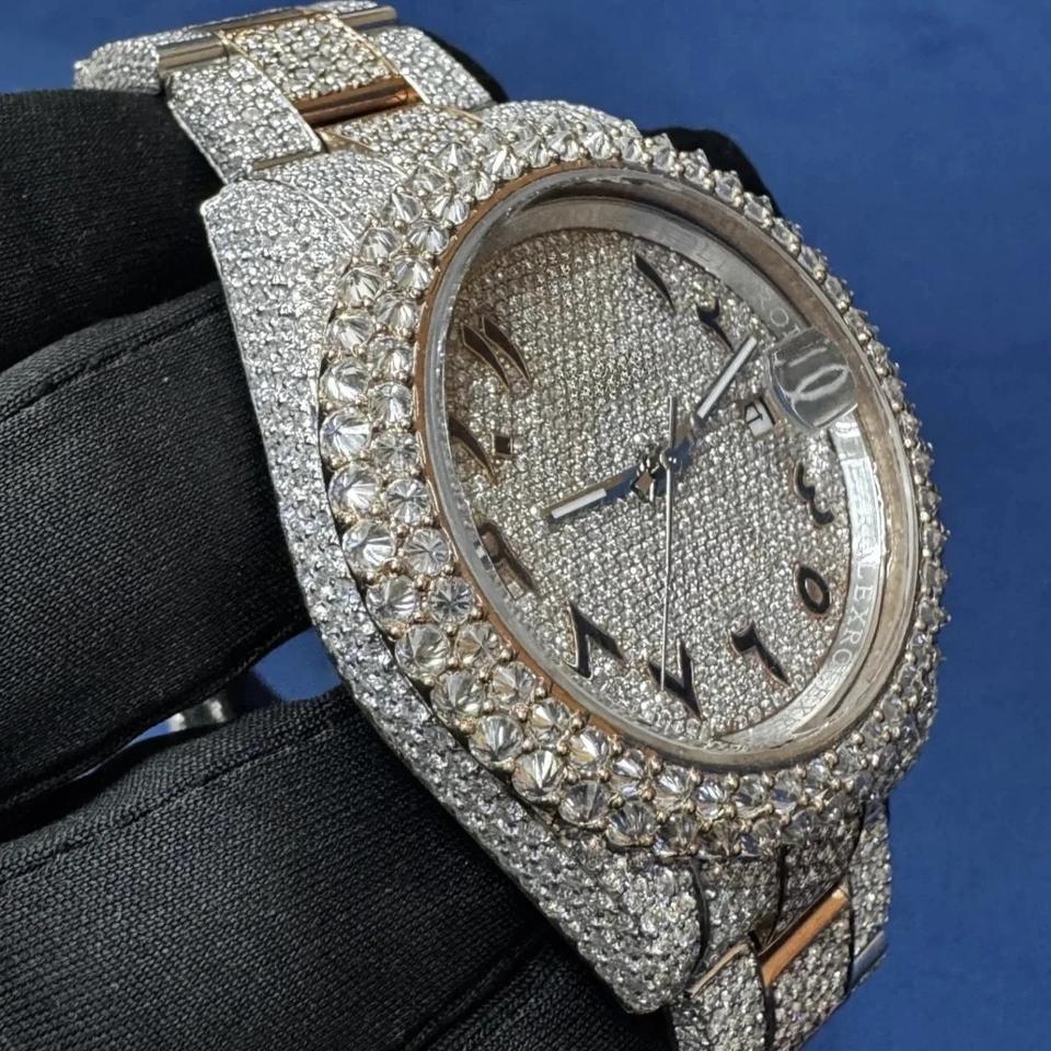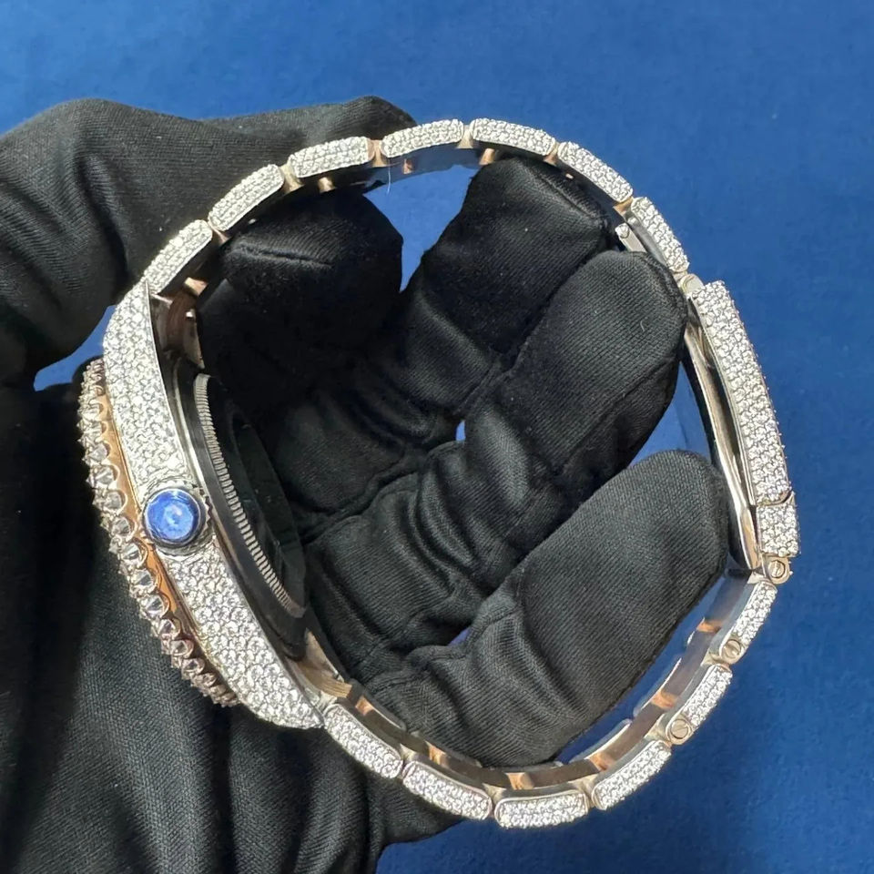 High Quality Moissanite Diamond Stainless Steel Case Mechanical Movement Men's Wrist Band Luxury Men Watch