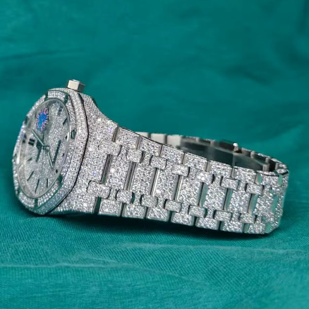 High Quality Antique Moissanite Diamond Watch D VVS Certified Stainless Steel Band 21mm Wide Water Resistant Crystal ETA Quartz