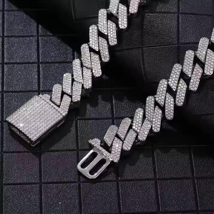 High Quality Moissanite Necklace with American Hip Hop Cuban Chain for Men's Wear Direct Indian Supplier