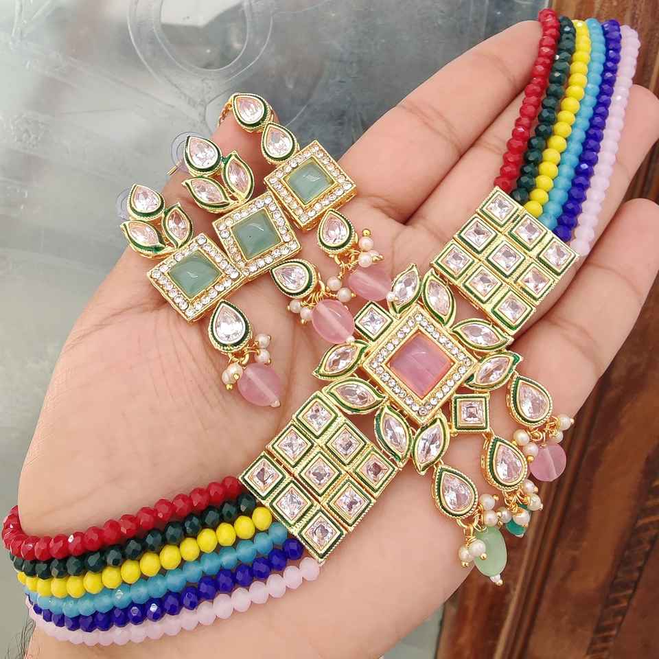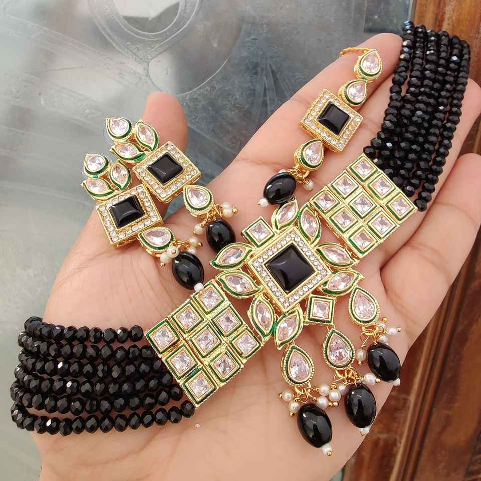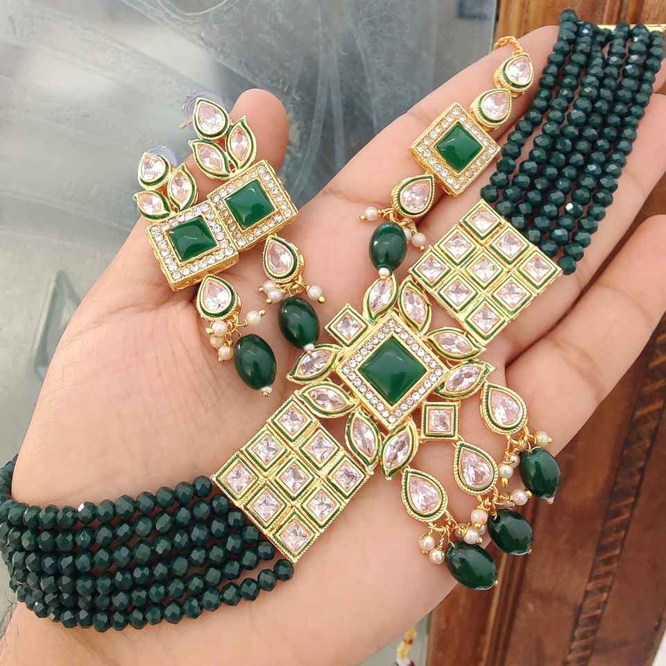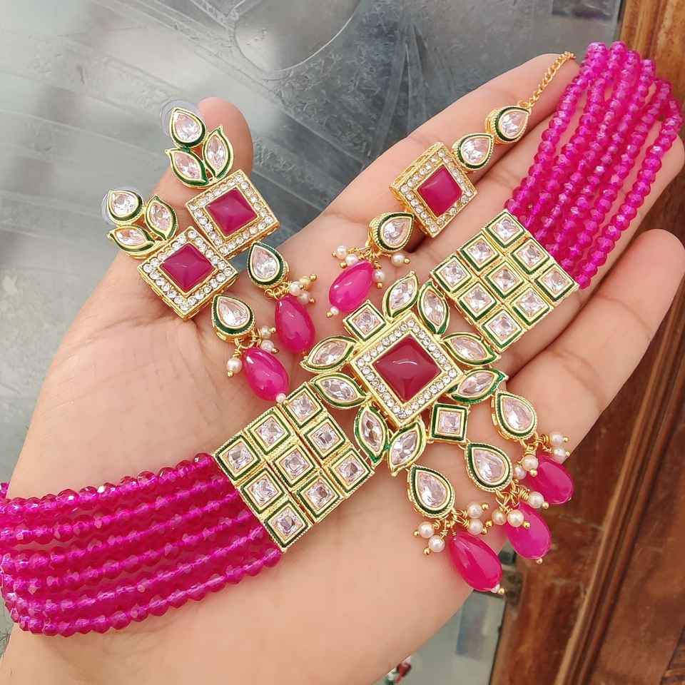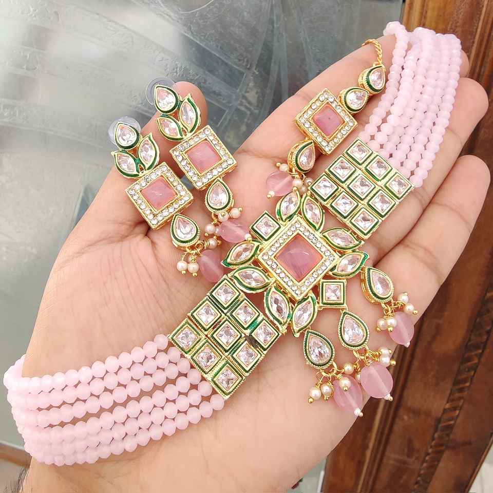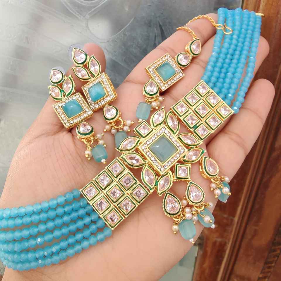 High Quality Monalisa Diamond Choker Necklace With Beautiful Earrings & Maang Tikka Ideal For Festive Occasions Ethnic Wear Set