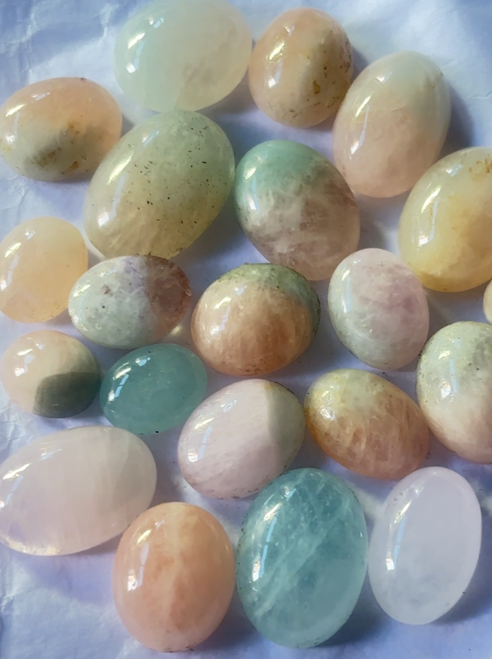 High Quality Morganite Bio Color Oval Carving Smooth Gemstone Handmade Jewelry Gemstone for Making Women Beautiful Anklet
