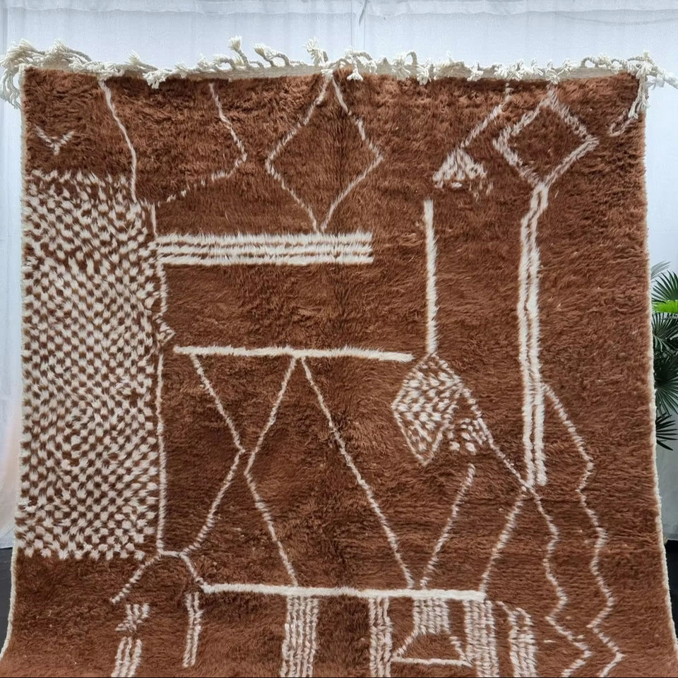 High Quality Moroccan Wool Rug Brown Abstract Handmade Area Rug with High Pile Manufacturer Supplier Offering Wholesale Price