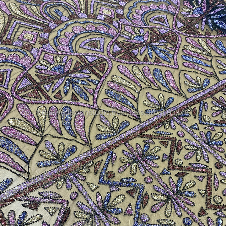 High Quality Multi-Color Beaded Fabric for Bridal Wedding Dresses Shiny Embroidery Mesh With Lace Crystal Manufactured With Care