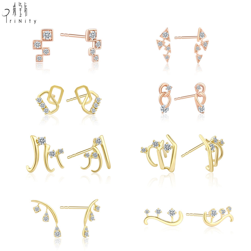 HongKong Supplier Special Shape Design 18K Solid Gold Real Natural Diamond Earrings High Quality Wholesale Earrings Jewelry